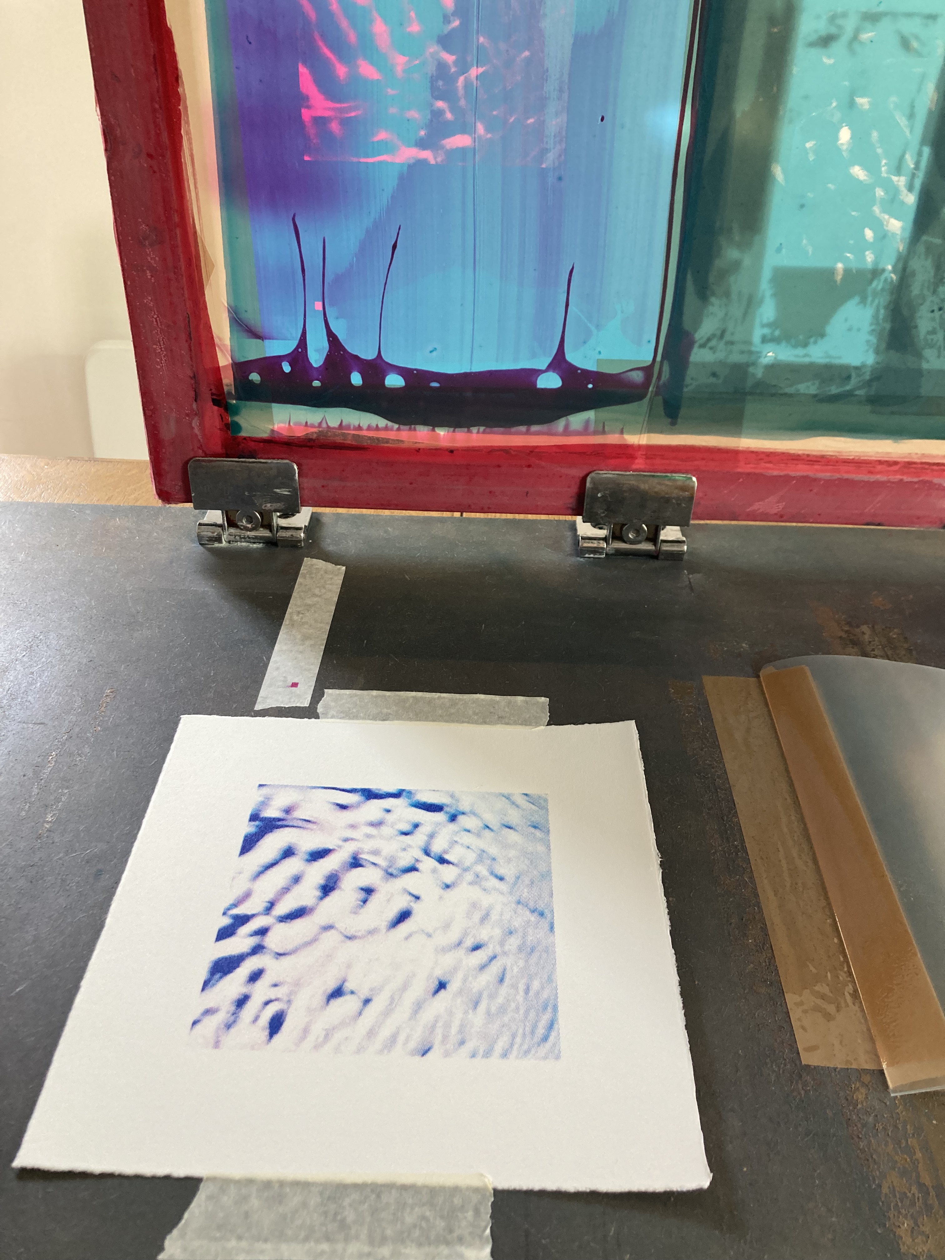 process: i am spending most of the summer away from my studio but coming up from time to time to do a little printing, sorting and planning. i started working on a CMYK edition based on theme for an open call which i am happy to say is finished and posted to Spain to be part of a print exhibition over late summer into autumn. i had planned to work up some other images but found these source images when scrolling through my folders and was interested to see how my edits would translate through the CMYK colour process. i began with a handshake image which, after i had done the entire 4 colour layers, i felt was not suitable to the close registration needed for this process – ie it felt like i had mis-alligned the colours and that was why the image was blurred. anyway, my second image was more successful and i was happy to submit this work. this open call specified the max paper size of 20cm x 20cm and, as always, i was happy to work in this small scale. however, i am curious to see how this image of the sand and tide might scale up – i think its time to increase my scale?? anyway, here are some images of the process.